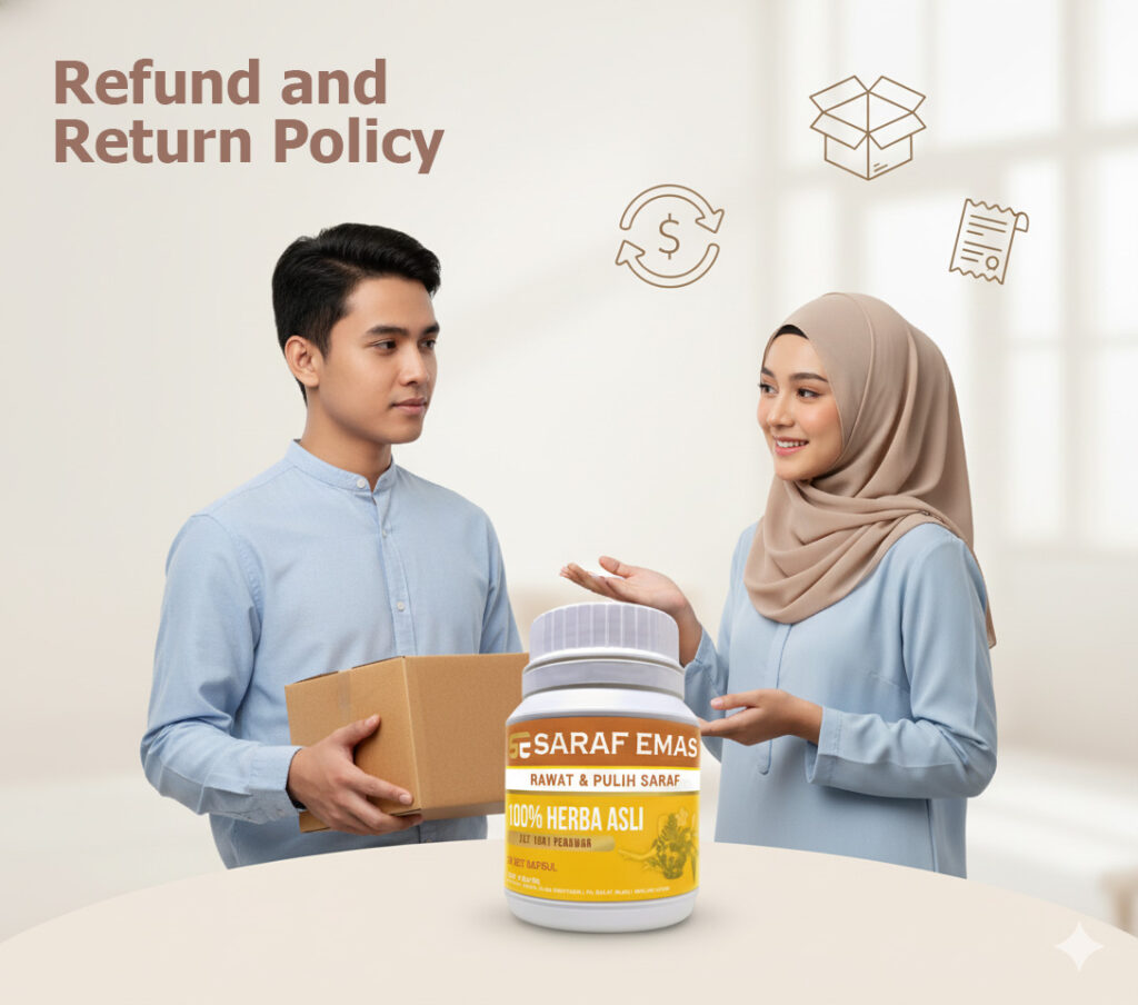 Polisi pemulangan dan bayaran balik Saraf Emas sah selama 30 hari dari tarikh pembelian.